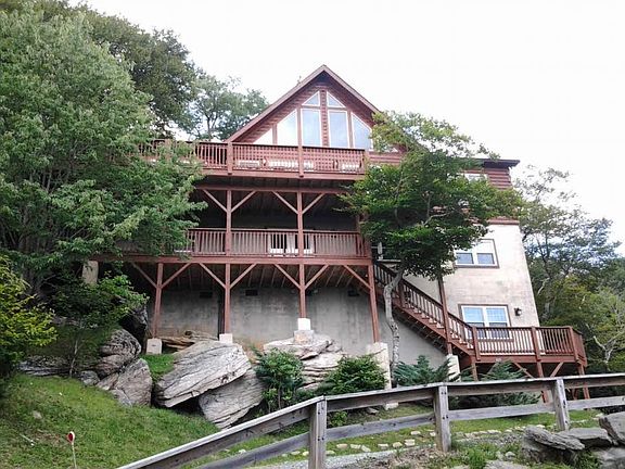 Wow! 5 bedrooms, 5 baths at 5,000 feet elevation with a great view in beautiful Beech Mountain, NC. The town of Beech Mountain, at an elevation of 5,506 feet, is recognized as the highest town in the eastern USA. So summers are cool with prime hiking and mountain biking. This newer home is lightly used and offered fully and nicely furnished, PLUS the lot next door (109 Spruce Hollow) is included. There are two living areas plus a small game room in the lower level. Three of the five bedrooms have baths en suite. Big decks on two levels for living and to take in the view. There is a private deck with a newer hot tub in back. This lot and the one next door have impressive rock outcroppings. There is room for everyone at this house, and it would make a fantastic vacation rental! Driveway offers a turnaround and plenty of parking. Home is on city water and sewer and has a Generac Generator. Great location on Beech Mountain. Club Membership included!