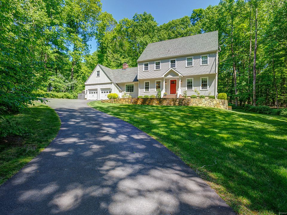 Beautifully renovated colonial-style home with a contemporary flair. Embrace the seamless flow of an open floor plan featuring hardwood floors, crown molding, and recessed lighting. The focal point of the home is the inviting family room with cathedral ceiling adorned with shiplap, where a striking floor-to-ceiling wood-burning fireplace sets a cozy ambiance. Glass slider lead to a paver patio, complete with a built-in fire pit, offering a serene retreat within your expansive 1.38-acre backyard. The light-filled kitchen offers a spacious design, featuring a large island with a gas cooktop, complemented by granite countertops, a marble backsplash, and stainless steel appliances. Seamlessly connecting to the family room and dining area, it's an ideal space for both casual gatherings and culinary adventures. A formal dining room and powder room provide added convenience for hosting guests. Upstairs, discover three bedrooms, including a master bedroom with an updated full bath with a generously sized shower, dual sink vanity and a walk-in closet. A secondary bathroom offers a combination tub/shower. A finished walk-up attic with vaulted ceiling, exposed beams and French doors, provides 500 SF of versatile space; either as a fourth bedroom, playroom, or a home offie. Well lit finished lower level walk-out offers an additional 1,000 sq ft of space featuring a large laundry/craft room and 2 large rooms for exercise, theater, wine cellar, or studio; slider leads to a private patio. With native stone retaining walls, asphalt driveway and ample backyard space, this home is move in-ready. The dual system HVAC with propane gas heat and central air will keep you comfortable in all seasons. Added features include a two-car garage, security system, automatic generator and ab irrigation system. Conveniently located, minutes to I-95 and major commuter routes, the historic Guilford Green, shops, restaurants and town beach.