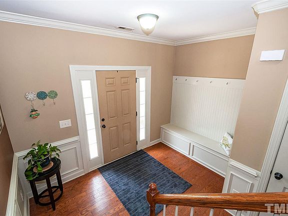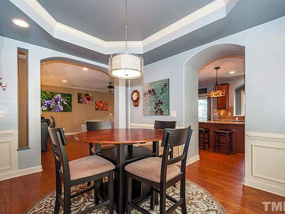 Gorgeous 4 bedroom home, lovely hdwds on main flr, arched doorways, elegant dining rm w/trey ceiling & wainscot molding, kitchen offers granite counters, island/bar & SS appl's. Lrg living rm has corner gas log frpl & access to a beautifully landscaped fenced backyard with wonderful patio for outdoor entertaining. Spacious master w/trey ceiling, his/hers walk-in closets & a luxurious glamour bath. Finished 3rd flr w/huge bdrm, full bath & walk in storage access. Convenient to shopping, I-40 & I-540