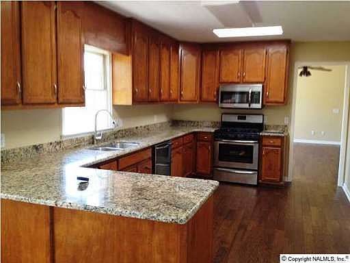 Unbelievable brick rancher close to Research pk and Hsv. Kitchen boasts custom cabinets w/ under & inside lighting,stainless gas stove & appliances, new backsplash, bar, pantry, granite counters & nice eat in area. Formal living & dining rooms. New Rheem water htr. Cozy great room w vaulted ceiling & fireplace. Master bedroom has walk in, tray ceiling & dbl doors to glamour bath. Ceramic tile, double vanities & granite counters in both baths. New lighting on ext and int. New inside paint. Wood floors. A MUST SEE!
