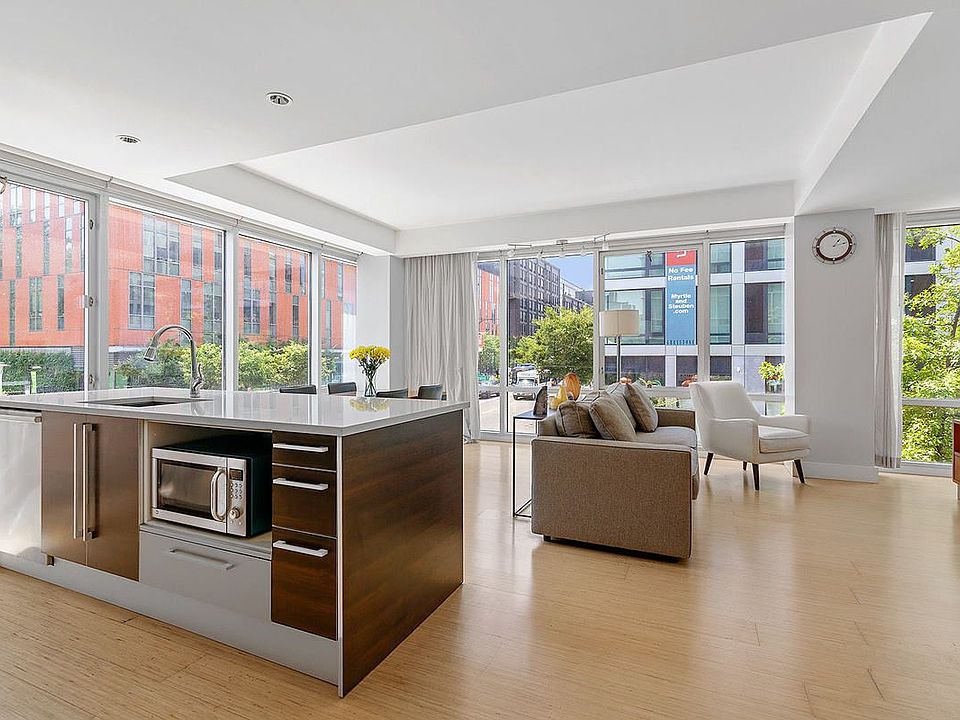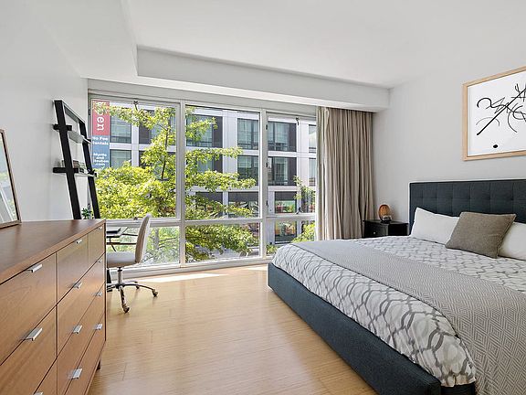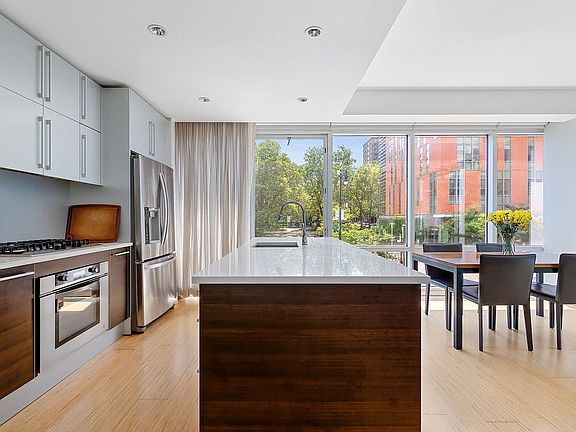 Located in bustling Clinton Hill, this stylish corner apartment has two bedrooms and two full bathrooms. Illuminated with sunlight from floor-to-ceiling windows throughout allowing beautiful western & southern light to fill this home. This apartment has it all! The chef friendly kitchen with caesarstone countertops and large island, is open to the dining and spacious living room; this creates the prefect entertaining and living environment! Italian Pendi soft touch cabinetry with Bosch appliances including a dishwasher. Two spacious bedrooms, the master bedroom has an elegant and spacious Sierra Nevada Volcanic rock lave-stone tile en-suite bathroom with a large glass enclosed shower and the second full bath has a luxurious soaking tub. Washer and dryer closet, central heat and air conditioning. To round off this great apartment it comes with a deeded underground parking space included in the selling price. If you have more than one car no problem there are spaces available for purchase!!! The elevator goes down to the parking garage on the basement level. Common Charges: $857 R.E. Taxes: $41 Designed by architect Gary Shoemaker. The Absolute is a glass six-story, double elevator, 35 unit condominium that has a gym and a spacious recreation room complete with billiards, ping pong, tv-lounging area, and wifi. Enjoy all that Clinton Hill has to offer which includes Wegmans, Brooklyn Grange, Pecks gourmet market and the new East River ferry dock. This now Landmarked neighborhood has been anchored for many years by the esteemed Pratt Institute.