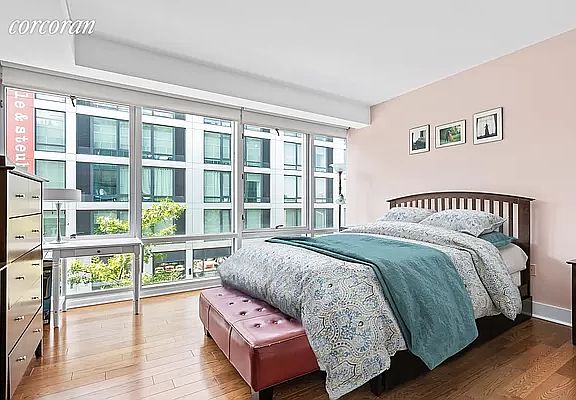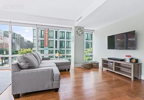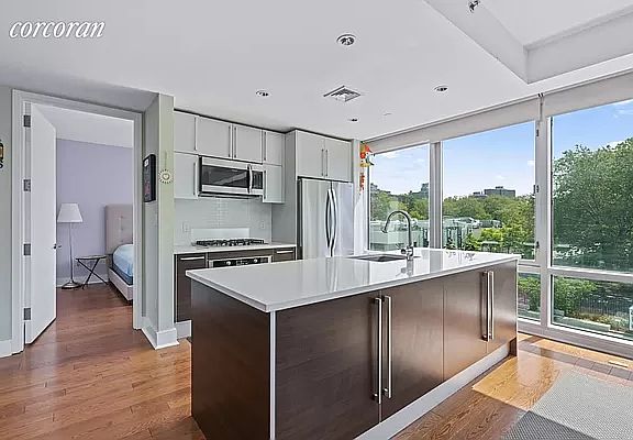 Gorgeous 1193 square foot two bedroom, two bath with exclusive deeded PARKING Space! This Corner apartment in the Absolute Condominium, designed by architect Gary Shoemaker, offers floor-to-ceiling windows, south western exposures, new hardwood floors throughout with soundproofing below, new Bosch washer/dryer, and new light fixtures. The kitchen features Italian Pendi cabinetry, Bosch dishwasher, Fagor range, built-in Frigidaire microwave, new subway tile backsplash and Caesarstone countertops. The designer baths offer deep soaking tub, spirit white glass mosaic in shower, Sierra Nevada volcanic rock lava stone on walls and toto toilets. This fantastic home comes with central air and heat, a video intercom system, a fab keyless entry, and deeded underground parking space with additional storage space included in the parking. The building amenities include two elevators, a common roof deck with Manhattan/panoramic views, a fitness center and large common room with a pool table and entertainment system. Located in Clinton Hill, near many restaurants, cafes and lounges! The G subway line is only 5 short blocks away at the Classon Ave station and the B54 is a quick thoroughfare to Fort Greene/The Atlantic Terminal.