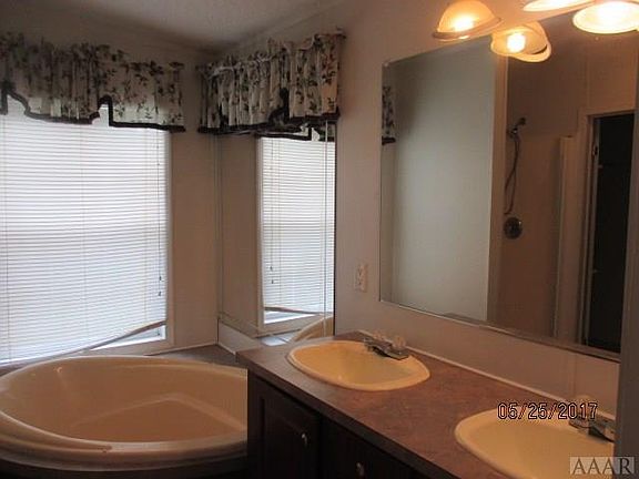 Large home in South Mills, NC with 4 bedrooms with connecting baths, living room, step down den with fireplace, large kitchen/dining with walk-in pantry & gas stove, utility room, master with 2 walk-in closets, master bath with garden tub & shower with double sinks, and large screened back porch. Property is 3.14 acres with a pond and backs up to Joyce Creek. Home sets off the road with gravel/dirt entrance. Needs minor repairs. Located in minor subdivision called Highland Properties. Great area for VA commuters.