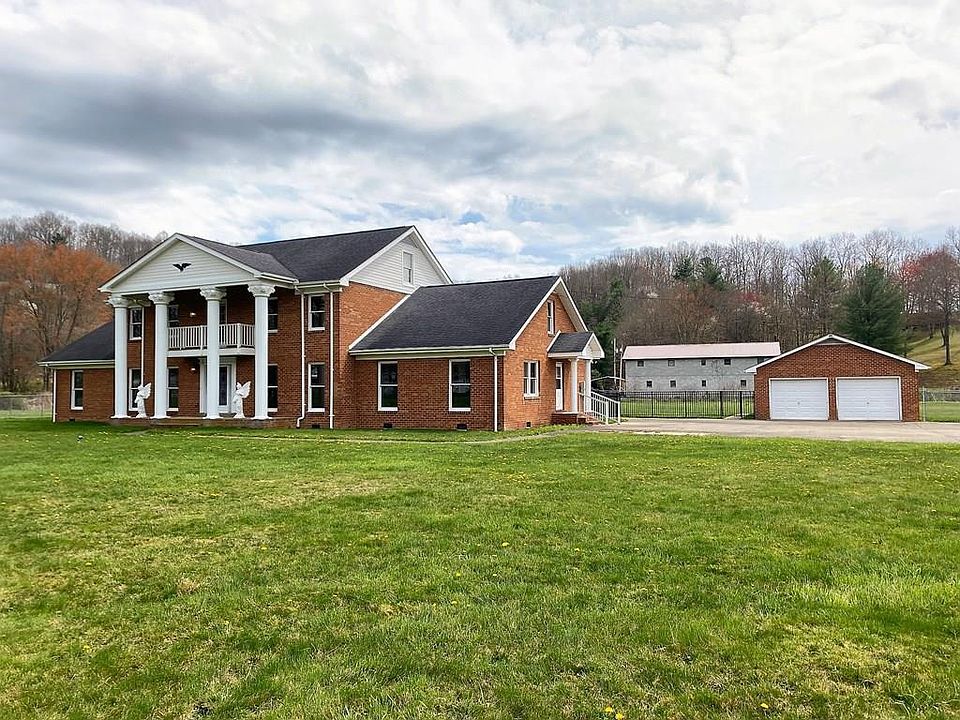 Brick Colonial on 3.138 ac lot Main Fr features fully-equipped Kitchen, Formal Dining & Living Rooms, Foyer, Family Room w/ Wood-Burning Fireplace, Master Suite, Breakfast Room, Laundry & 2 Offices, 1.5ba. Upper level features Sitting Area, 3bds 2bas, Large Rooms off 3rd&4th Bds that could serve as additional bedrooms. Basketball&Tennis Court, Covered Porches and Two-Car Detached Garage.