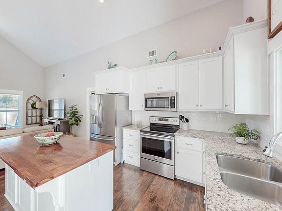 - Solid Surface Counters, Walk-In Closet(s), Bedroom on 1st Floor, Cathedral Ceiling(s), Ceiling Fan(s), Kitchen Island, Primary Downstairs, Pantry