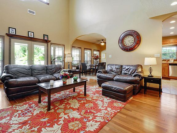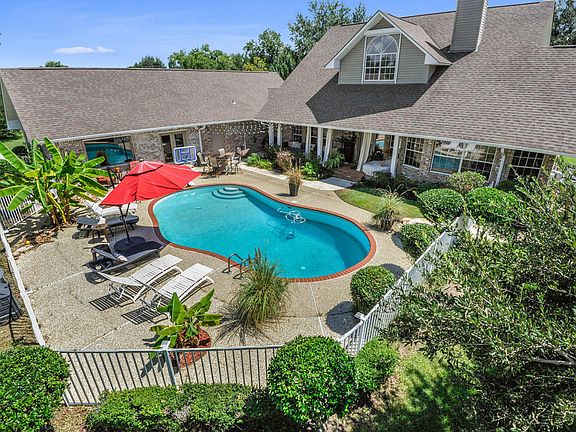This house is amazing!Great floorpan with over 3200 heated and cooled SF inside the house; with Private lush salt water pool with great entertaining area / porch cabana / and a 560 SF game room ; plus a 1000 SF workshop storage area and 2 acres of high elevation. House has been upgraded with granite throughout and decorator colors and lighting. Master bath on first level, and 2 large bedroom suites upstairs, Office and media room give additional options for family living. Lovely landscaping and trees add to this estate home awaiting the new owner!