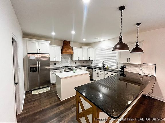 4-bedroom, 2.5-bathroom home! This property offers a spacious living room with an electric fireplace, creating a warm and inviting atmosphere. The modern kitchen is a chef's dream, featuring stainless steel appliances, including a built-in wine refrigerator, and sleek granite countertops perfect for meal prep and entertaining. The four bright and airy bedrooms provide ample natural light and generous closet space, ensuring comfort and convenience for all. Step outside to your private deck and yard, ideal for relaxing or hosting BBQs. While the yard is not fenced, it offers plenty of room for outdoor activities. Pets upon approval. Conveniently located near Highway 87, with easy access to Sanford, Fort Liberty, and Fayetteville. Owner pays for sewer/septic Tenant pays for water, electric, gas, trash disposal. Pets are negotiable, determined by owner.