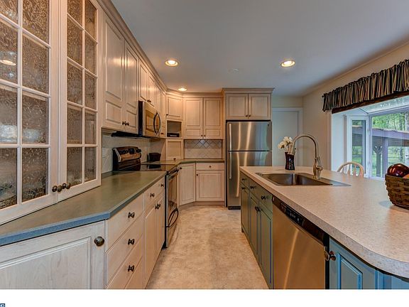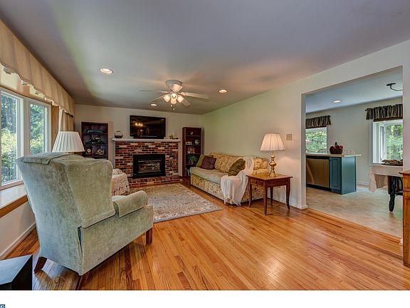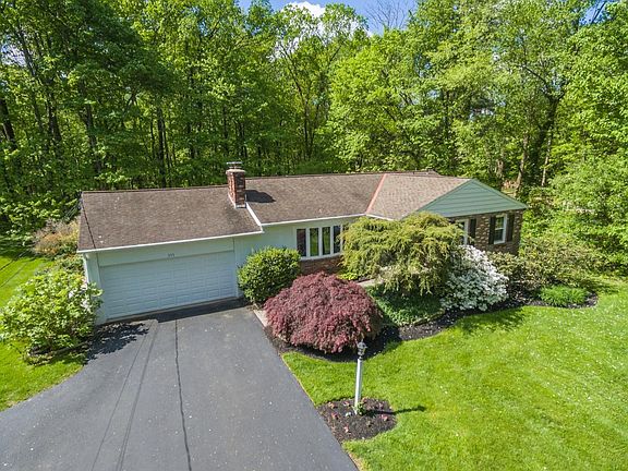 Drop your luggage and pop the cork - this house is not just move in ready - it's straight to unpacking ready. Newly refinished hardwood floors, two completely brand new bathrooms, freshly painted rooms, new kitchen island and newer replacement windows means everything is sparkling and ready. Located on a wide and winding road in a picturesque community minutes from major routes but a short walk from walking trails to 37 acres of park land. What an amazing opportunity for commuters! Imagine coming off the highway and instantly relaxing as you wind through the beautiful ranch style homes to the prettiest lot of all. Enjoy lush lawns and great covered deck perfect for unwinding and listening to the sweet songs of the birds and peepers. Living room entrance featuring newly refinished hardwood floors found throughout most of the home, beautiful picture window and a sturdy brick fireplace with propane insert. The kitchen with breakfast room has two wonderful greenhouse style picture windows to bring the outside in. One of the best things about this house is the ability to sit in the living room or kitchen and watch the peaceful multi-season display. The kitchen has expansive cabinets, glass display cabinetry, center island with casual seating, great storage and deep sink with spray faucet and garbage disposal. Brand new appliances, appliance cubby and built in corner cabinet are additional features. The two car garage is accessed through the very large laundry room. Access to the basement is in the garage as well. The master bedroom has a beautiful new partial bath, two large closets, ceiling fan and those great newly refinished floors! Two additional bedrooms share a brand spanking new hall bath. Full unfinished basement, two car oversized garage, covered rear patio and gravel patio. With wide streets for strolling and access to 37 acres of park land and your own gorgeous property this home is beautiful, peaceful and ready to enjoy!