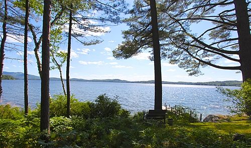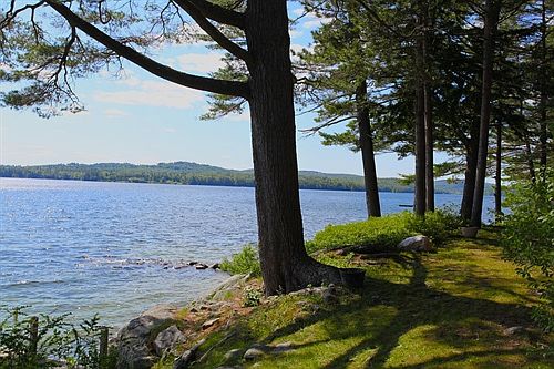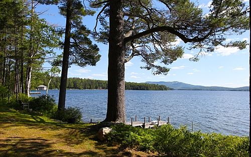Widest water views from every vantage point and almost every window of this charming lakeside year-round home. The 2.05 acre property includes 163' lake frontage where level yard and lawns overlook commanding views of Lake and Mt. Sunapee. Never miss a sunset from the front porch. The kids will love the shallow sandy swimming. Deep water dock. Beautiful landscape and vegetation. Quiet private country road. The 3 bedroom home features a state-of-the-art kitchen w/stainless appliances and soapstone counters. Gather the clan in the atrium style dining room. Generations can relax together or separately around the fireplace in the great room or the woodstove in the family room. Wrap around porches extend the living spaces. The attached 2 car garage offers walk-up storage. An original cottage built in 1906 was placed on new foundation in 1980 - significantly renovated & winterized. Old Hampshire Designs completed 2nd renovation in 2004 with all new systems - & rustic style. 2 bedroom septic.