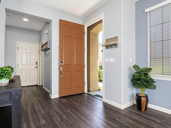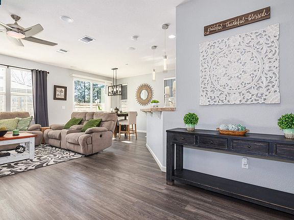 This gorgeous newer home has an open floorplan that makes this home perfect for entertaining guests. Cozy up on those cool nights next to the fireplace, or night BBQ under the backyard lighted Pergola. This is a single family home in private common court. Great corner lot with low maintenance yard. Features in the home at time of purchase: surround sound, Polk ceiling speakers, wired with Smart house security capabilities; breakfast bar, ceiling fans in several rooms, epoxy garage floor. Home Updates after purchase in 2017: laminate flooring and carpet, remodeled downstairs bathroom, garage door, AC, Nest Smart Thermostat, dishwasher, microwave, kitchen faucet, garbage disposal, floating cabinet above TV, ceiling fans in living room and primary bedroom, Island pendant lights, interior paint, Hallway Mart string lights, backyard Pergola with string and disco lights, cement patio and rocks, cinderblock/wood bench, dining room chandelier. Monthly HOA $188 - fees cover front yard landscape maintenance (includes water for front sprinklers only). All iinspections are done and FHA appraisal is done and can be transferred to new FHA buyer to help buyer save costs - transfer process takes 2-3 days.