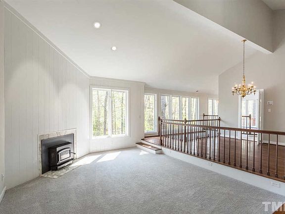 Check out this 5000 sq ft ranch style home with a brilliantly finished basement in the heart of Cary! Sits on over half an acre with a beautiful lake view, soaring trees and walking trails. Vaulted ceilings, floor to ceiling windows, two wood burning fireplaces, true hard wood floors, a screened-in porch, a deck and a terrace out back! New carpet and paint throughout, newer metal roof and AC unit. This home screams character and entertainment! It is just waiting for someone to make it their own!