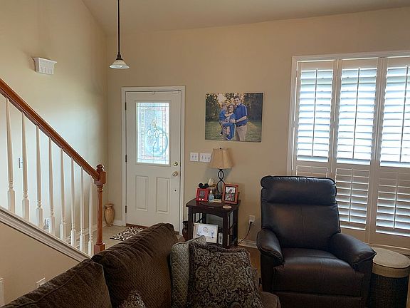 All brick house right on the edge of Winchester city limits. House offers a first floor master with his and her closets. Master bath offers dual vanities and a garden tub. Living room, kitchen, and dining area offer solid hardwood floors throughout. Living room has 20' ceiling with a natural gas fireplace. First floor also has a half bath and a separate laundry room. Second floor offers two bedrooms and a large multi-purpose room overlooking the living room. There is another full bath upstairs. The garage has extra space for a work area as well as a large storage area with plenty of organizational options. The backyard has a custom stamped concrete patio and a natural gas hookup for your grill.