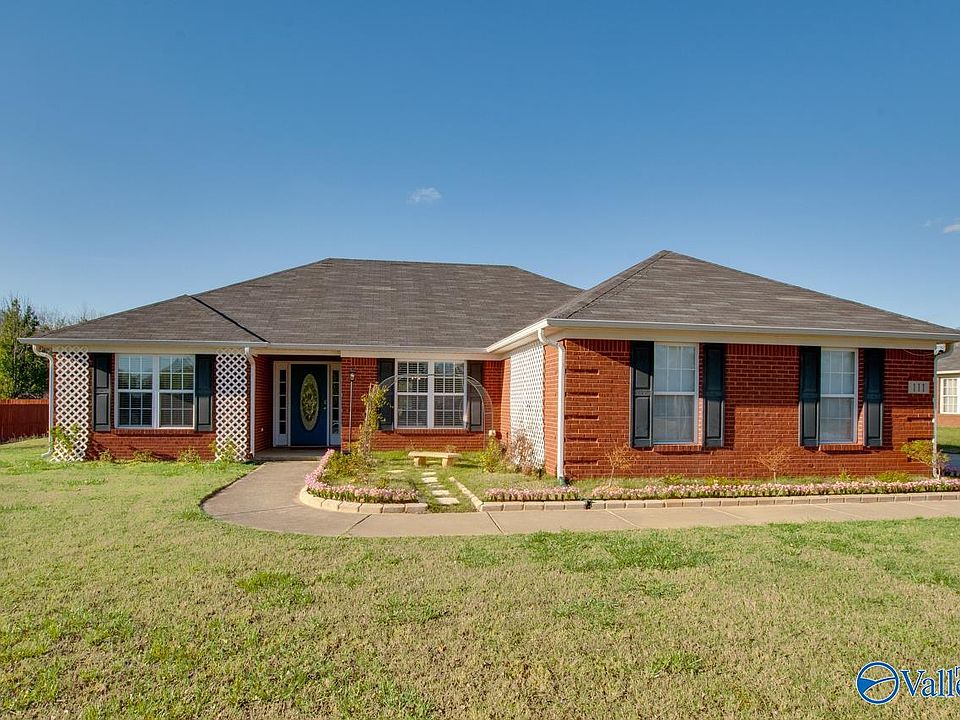 Located in a target area for Alabama Housing State Bond program (see photos) - Lovely 3-bed, 2-bath brick rancher in Briarwood Subdivision. Practical layout, crown molding, laminate floors in living/dining areas. Spacious living room with trey ceiling, fireplace, leads to covered patio with extra concrete pad for grilling. Updated kitchen with new butcher block countertops, stylish marble backsplash, and a chef's fridge. Private primary suite with NEW CARPET, en suite bath, walk-in closet. This home sits on just over half acre with a nice outdoor patio and a new storage shed. Great for investors or homebuyers looking to personalize their dream home!