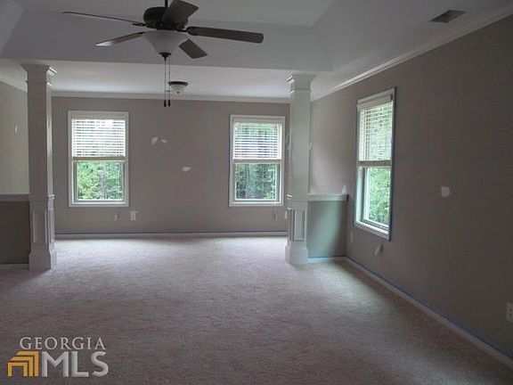 The Braxton Plan. Open floor plan on main level with 2 story foyer, oversized great room that flows into the kitchen, breakfast and dining rooms. Filled with architectural detail. Main level also features a full bath and one bedroom. Master suite with sitting area and garden bath with his/hers vanities and nice walk-in closet. Kitchen features custom cabinetry, granite countertops with tiled backsplash, whirlpool stainless appliances and hardwood flooring. Side entry 2 car garage. Oversized 1.43 acre wooded lot in quaint 28 lot subdivision conveniently located between LaGrange and Hogansville offering a country feel with easy access to the Interstate. Now under construction with approx completion date mid Sept. Builder paying 2500. CC