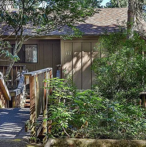 Park like views! This condo has been well maintained with wood laminate flooring on main level with upgraded kitchen and working wood burning fireplace. Condo features 2 ductless units all appliances included. Walking trails in your backyard. Rec center has a pool and HOA covers water, cable and garbage. South Eugene school district.