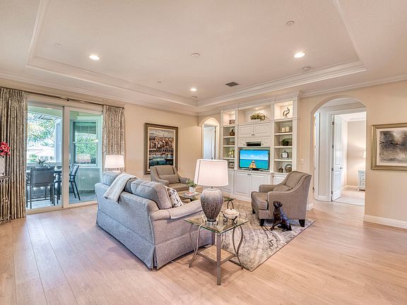 BREATHTAKING views could be yours from this exceptional 3 bedroom, 3 bath PLUS den/office, 2 car garage carriage home in the resort-style community of Jupiter Country Club. This open-concept home is elegantly inviting and provides all the essentials for easy Florida living. Live comfortably in this energy-efficient home with a tankless water heater, 2023 AC, CBS construction and impact glass windows throughout. Countless interior designer upgrades include tray ceilings, crown molding, plantation shutters, luxury vinyl plank flooring, and stylish light fixtures & ceiling fans. Relish the sunsets and wide lake views from the private wraparound screen-enclosed covered patio. The kitchen boasts granite countertops, a wine refrigerator, stainless steel appliances, and a large center island with pendant lighting. The primary suite is spacious with a tray ceiling, crown molding, a huge walk-in closet, and offers access to the patio. The primary bath is spa-like with dual vanities, a makeup sitting area, a large soaking tub, and walk-in shower with a frameless glass enclosure. There are 2 guest bedrooms (one with ensuite bath) and a separate den/office which could be used as a 4th guest bedroom. Jupiter Country Club is a luxury gated community conveniently located within close proximity of I-95 and the FL Turnpike, beaches, shopping, restaurants, parks & nature preserves. Club amenities include a Greg Norman designed golf course, 2 resort-style pools, the newly remodeled Sway restaurant, a state-of-the-art fitness center, tennis, bocce ball, pickleball & basketball. Live your best life here!