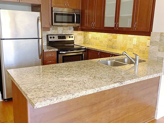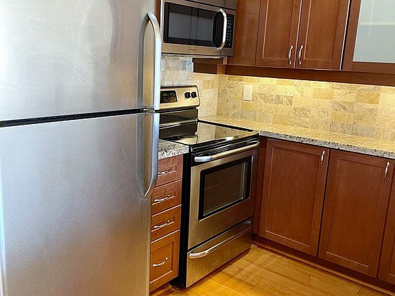 Warm southern exposureGranite kitchen countertopStone backsplashEngineered hardwood flooringStainless steel kitchen appliancesOne underground parking