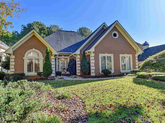Panoramic golf course/lake views! This home is much larger than it looks & has a great flow for entertaining, relaxing & taking in views to the golf course. The open concept floorplan allows you to interact with family and guests from the kitchen to the keeping room w fireplace/gas logs & casual dining area. The formal dining room will accommodate 12 guests. The formal living area has a fireplace w gas logs & built in cabinets. The master bedroom is large & has a sitting room that can easily become a 3rd bedroom on the main level. Needs renovation and worth the effort!