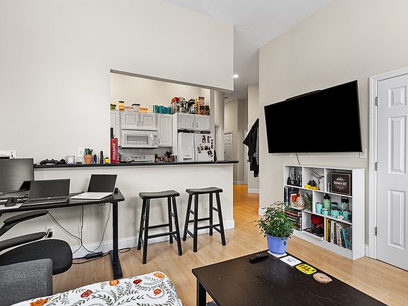 Lovely two bed with parking! This top floor corner unit is one of only a couple units in the building that has its own private entrance from the street. Open kitchen with breakfast bar and gas cooking. Huge windows and high ceilings throughout the unit let the light pour in. Two big bedrooms with the primary having a large walk in closet. There is common laundry but there are laundry hook ups in the unit for you to install your own machines. Great storage within the unit, plus a private storage closet, outdoor deck and one off street parking space come with this condo. Close to everything in the most rapidly gentrifying area of Southie, like Tatte and the T! This is a great unit for a first time home buyer. Unit has tenants until August 31, 2025.