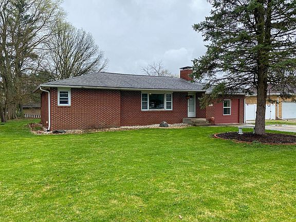 This very durable brick home is ready for you! The two bedroom, one bath home has been very well-kept. The garage has been converted to a laundry room and flex room that is currently being used as a bedroom. This increases the usable space to 1,492. The living room floor is new, with both trendy vinyl planking, and an extra long tile entrance, that extends past the rugged-looking stone fireplace. The wood-burning fireplace promises many cozy evenings of relaxation. The kitchen is nicely tiled as well, with lots of cabinet space done in stylish lighter wood. Counter top stove, microwave cubby, and tile back splash are a plus. Refrigerator and microwave staying! Dining room is adjacent to kitchen, also with nicely tiled floor. Bathroom has newer vinyl planking, a charming barn door vanity and shiny tiled bath walls. Bedroom one has wood walls with a built-in dresser, a big floor-space saver. Bedroom two has the same inviting wood walls, with both bedrooms having hardwood floors. The garage has been converted into both the third bedroom and a laundry room. Convenient mudroom is well-equipped with a sink and shower stall. Backyard has a patio where you can unwind, and a garden shed to keep your outdoor treasures organized. If you love small town living, check this one out!