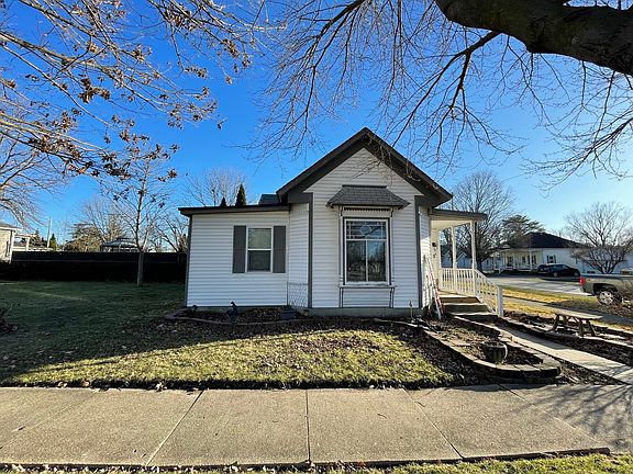 Take a look at this charming 3 bedroom bungalow sitting on a quiet street near shopping and restaurants in the peaceful town of Atwood! Head up the landscaped front path to the inviting front porch and enclosed drop zone. The cozy living room boasts neutral tones and classic trim work. Through the cased opening you'll find the bright and airy eat-in kitchen featuring updated low-maintenance flooring, clean white cabinetry, and built-in storage. The split bedroom designs offers the primary just off the kitchen with two additional bedrooms off the living room. A shared full bathroom offers stylish tile and more built-in storage options. Relax and unwind outside on the large wood deck or play in the fenced yard complete with firepit and access to the detached garage. Make this one yours!