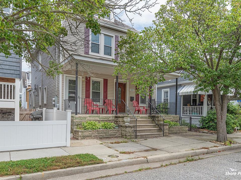 Updated duplex in a great location, just one block to North Wildwood and right down the street from Mariner’s Pier & Raging Waters, Sams Pizza, Curley’s Fries, Gateway 26 Arcade and so much more! The 1st floor is 4 bed / 2 bath, and the 2nd floor is a LARGE 1 bed / 1 bath. The first floor has vinyl plank flooring, updated kitchen w/ granite countertop, 2 modern bathrooms, stackable washer / dryer with utility sink and so much more! In addition to the huge front porch, there is also a private porch area on the side, that is right off the living room. The second floor has an open and spacious layout offering a full kitchen w/ attractive tiled backsplash, modern bathroom w/ tiled shower, utility area with stackable washer / dryer, and a large bedroom with big closet. Separate electric meters for each unit. Around the back there is an outside shower and two storage containers that are included. Sold Furnished. The property ia being sold "as is". Vacant and ready to show!