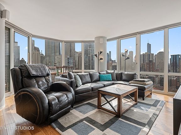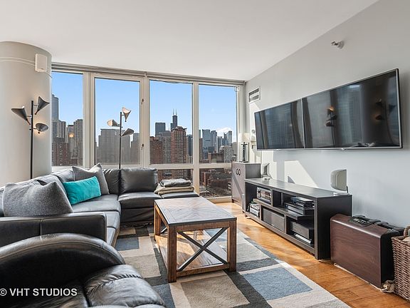 Recently renovated, 2 bed/ 2 bath open-concept Gold Coast home. Floor to ceiling windows with unobstructed SE-facing city and lake views throughout. Power shades in common areas, with blackout shades in bedrooms and newer hardwood floors throughout. All stainless-steel appliances less than 5 years old. Private balcony perfect for gill and bistro set. Nest thermostats, garbage disposal, in-unit washer/dryer with common laundry room available as well. 24-hr doorman, rooftop deck, covered garage parking. Dry cleaners and FFC (gym) in-building. Less than a 5 minute walk to nearest public transit, Washington Park, 7/11, Ace Hardware, Jewel-Osco, and Rush Street restaurants & bars. Quiet intersection with bars/nightlife a short, walkable distance away. Available partially furnished if interested, including dual TVs in living room.