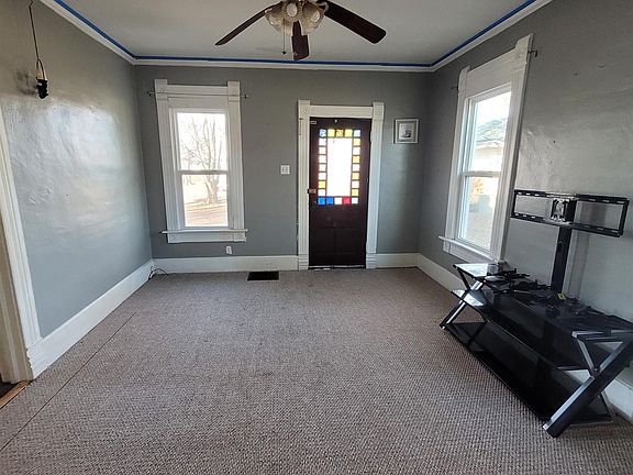 You will find so much potential in this 3, possible 4, bedroom, 1.5 story home located right across the street from the beautiful town park! Inviting stained glass door welcomes you into spacious living room. Original wood floor in master bedroom. Come check out this home and imagine all the possibilities!
