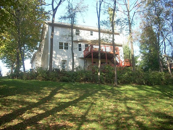 This amazing 1-1/2 story has 4 bedrooms, 2-1/2 baths and is situated on a beautiful wooded lot with stream. It features a two story great room with fireplace and large windows. The master bedroom is located on the first floor, and is complete with a walk-in closet and master bath. Enjoy a finished family room in the daylighted lower level with an entrance out to a second deck. The lower level also offers plenty of storage plus a workshop area.