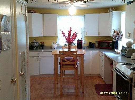 This one is a "Must See" inside. Larger than it looks from the street. Expanded kitchen offers plenty of cabinet space. Large 1st floor laundry room with cabinets. Huge back yard is an unexpected surprise offering plenty of space for pets and more. 1st floor bedroom has walk-in closet and hardwood floor. 2 additional very spacious bedrooms on the 2nd floor. Modern furnace. Double driveway. Easy highway access. Don't wait!