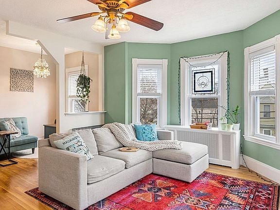 Located in the heart of Roslindale, this two-level condo has had so many updates in just the last few years: Second floor bathroom (2021), vinyl siding (2020), mini-split AC & heat (2021) and insulation from top to bottom before new siding was installed (2020). The home boasts abundant sunlight throughout the day and beautiful hardwood floors throughout—it's truly a must see! Featuring 4 bedrooms, 2 full bathrooms, and large kitchen with center butcher block island (2020) and newly painted cabinets (2021) and sliding door to a private deck with views of the back yard. There is an in-unit washer and dryer in the kitchen pantry. The formal living room and dining room with built-in china cabinet and two bedrooms complete the unit's first floor. Second floor offers a large master bedroom with master bath, huge windows, and an adjacent fourth bedroom with built-in shelving. This condo also offers basement storage, a garage space, off-street parking, and Harvey replacement windows.