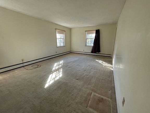 Nice townhouse style duplex 3 bed with 2.5 bath and a step down living room with an open and airy feeling and fireplace. There is a large dining room area as well as sliding doors to a deck. Hook ups and storage in the basement, garage parking plus driveway and a nice yard. Its located on a quiet ended way in a lovely setting. Just a short walk or drive to the Newton Corner Pike entrance or express bus stop. Newer construction, so no lead paint here. Excellent Credit and References required. Laundry Hook ups, No Pets allowed Oil Heat
