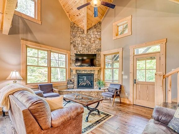 Welcome to this fully furnished, exceptional 4-bedroom, 2 and one-half bath home offering an open floor plan and finished terrace level. As you drive up the scenic road, you'll be captivated by the natural beauty that surrounds you. This property sits on a spacious lot, providing privacy and serenity. The moment you step inside, you'll be greeted by an open and inviting living space with large windows that frame breathtaking mountain vistas and a cozy, stacked stone fireplace. The kitchen has granite countertops, modern appliances, and a generous island that's perfect for entertaining. The adjacent dining area opens up to a deck, making it easy to dine al fresco while enjoying the fresh mountain air. An upstairs loft is an ideal spot for a home office or relaxing flex space. The primary suite is a true retreat, complete with an en-suite bathroom. Three additional bedrooms offer ample space for guests or family. The lower level is finished and has walk-out access. This property isn't just a home; it's a lifestyle. Whether you prefer hiking, fishing, or simply unwinding with panoramic views, this residence has it all. And for those cozy evenings, a backyard firepit is the perfect spot to retreat. Blue Ridge, known for its vibrant arts scene, boutique shopping, and farm-to-table dining, is just a short drive away. This is a no-pets, non-smoking property and will be available starting April 1, 2026.