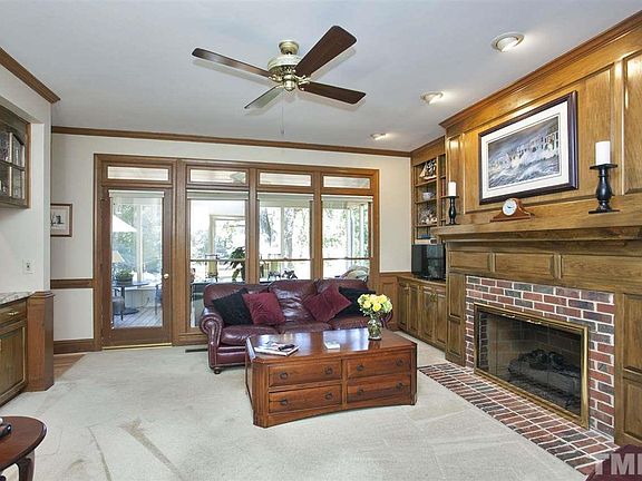 It's difficult to find a lot this large in Cary, .68 acres! This custom built updated 5 BR/3.5 BA plus bonus room is immaculate. The bright home has granite counters w/tile backsplash, refinished wood floors & updated plumbing, lighting & bath fixtures. Gorgous wood details surround the masonry fireplace in the family room. French pocket doors separate the living & family rooms. Entertain on one of several outdoor living areas; screened porch, multi level deck, stone patio or around the built-in pool.