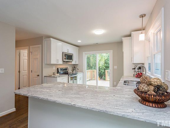 Gorgeous in HEART of Cary with a bright open floor plan and upgrades galore! Features a custom designer kitchen with new cabinets, Stainless Steel appliances and granite. New hardwoods through 1st floor, new carpet and designer paint. Gorgeous master suite with dual vanity with granite, tile walk in shower and walk in closet. New vinyl windows, water heater 2017. Convenient to Downtown Cary, Bond Park and 40. Pool, clubhouse and dog park included in HOA dues. Move in and Enjoy!
