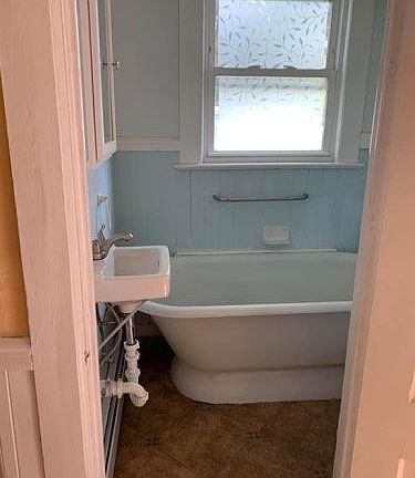 Convenient location 2 bed 1 bath 1st floor apartment. Beautiful original woodwork. Hardwood floors, coin-op laundry in basement and off street parking for 1 car. Credit and Background check required. Rent includes heat. Tenant is responsible for all other utilites. 1 year lease. NO PETS. Very easy living close to EB, Coast Guard and Hospital.