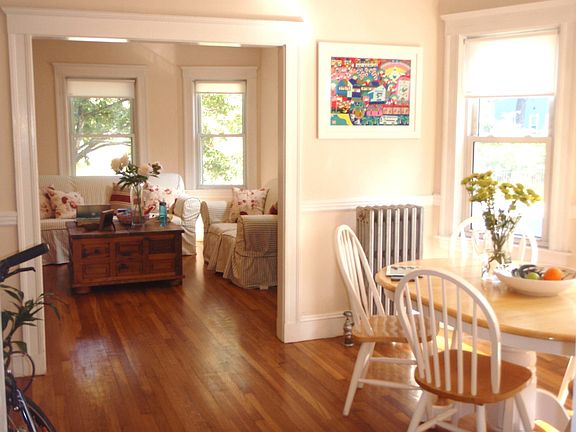 Incredibly sunny (Corner lot allows amazing sunlight) First-floor two-bedroom combines modern conveniences with JP charm. Located directly across from the Minton Stable Gardens provides a wonderful community & nature filled feeling. Unit including dining room with bay windows open to living room. Hardwood floors throughout Original wood trim. Shared back yard Rear porch Gas & Electric Utilities are responsibility of tenants Deleaded Located in the Parkiside neighborhood near Green Street T-stop, Doyle's Cafe, DMinton Stable Garden and children's playground. On Williams Move in costs: 1st, last, $1000 month security deposit, one month broker fee tenants. Extra $50 a month for a dog.