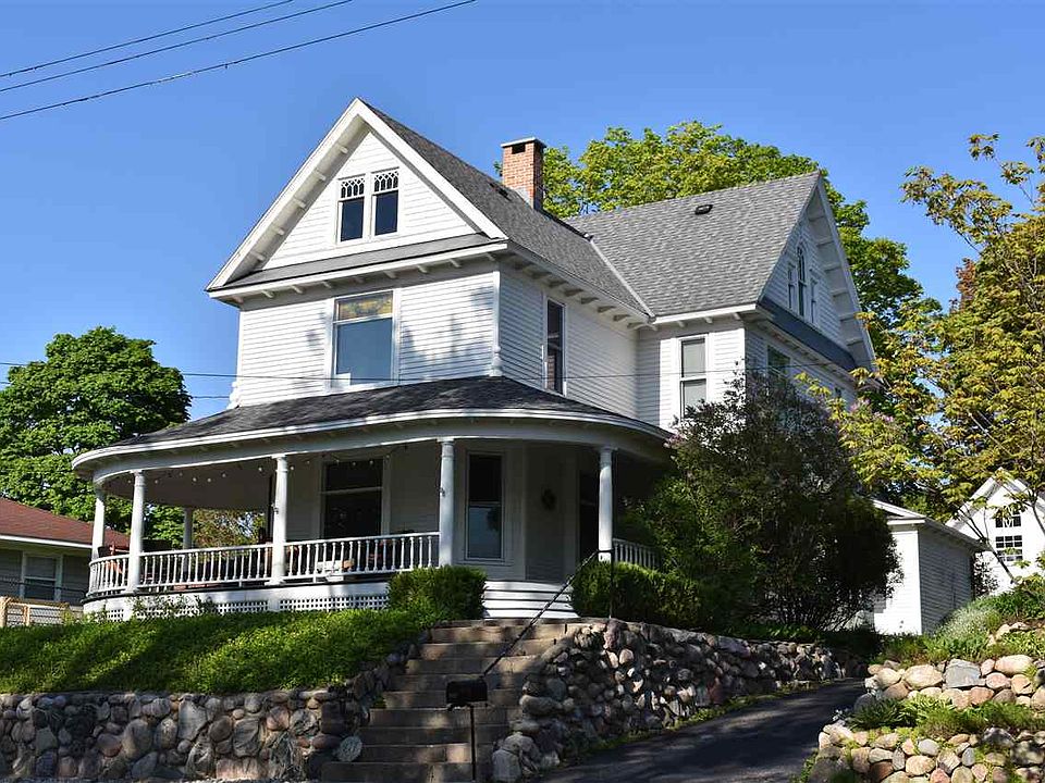 This historic beauty sits on quiet Williams St. in downtown Petoskey with views of the Bay from many of the rooms as well as the picturesque front porch. While the original charm has been maintained throughout, this home has many updates that make it perfectly suited for families and large gatherings. A recent addition made it so a family room with fireplace sits off the kitchen and the large master suite has a private bathroom and large closets. The basement has recently been finished with a second family room, wine cellar and guest suite. The newly built garage is deep and has a second level for additional storage. Home features original leaded glass windows, wood floors, beautiful moldings, two fireplaces, 5 bedrooms and 4 baths.