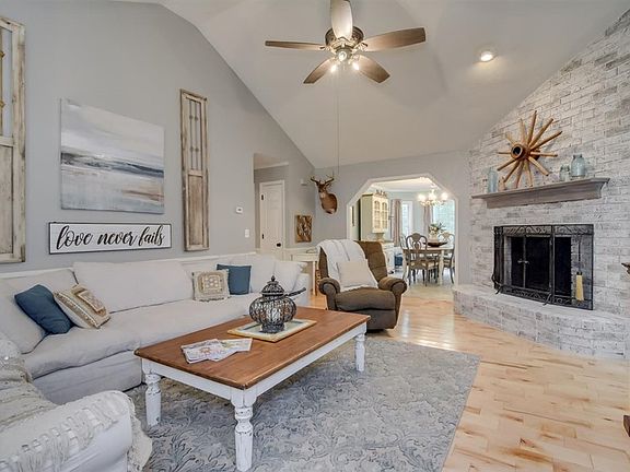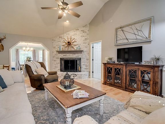 Enjoy privacy, peace and quiet...custom built 3 bedroom/2 bath home nestled in the heart of 8.7 acres. Constructed by J-Mar Builders, this home has recently been updated and completely refreshed with a designer's touch. The home features beautiful new paint and flooring throughout and a kitchen with custom countertops and cabinet finishes, along with new stainless steel appliances. The great room has a vaulted ceiling and brick fireplace as a focal point. Master bedroom has en suite bathroom with soaking tub and double vanity. The current owners added character with touches such as sliding barn doors and new fixtures. Double garage offer ample storage. Outside, find plenty of elbow room in a serene setting. The property backs up to a flowing stream and a fence surrounds. Property is divided into two tracts...keep them both for elbow room or have the option to sell one!