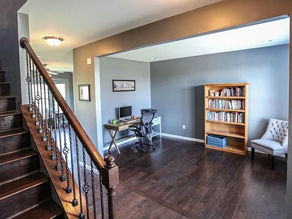Remarkable 2-Sty in desirable Wentzville-Timberland schools in friendly community of Wilmer Valley featuring walking paths, trails & picturesque stocked lake*Upon first entering, you will be amazed by beautiful new engineered hw flrs on both levels including stairway*Updated Kitchen has granite countertops, stainless steel appliances that all stay, brkfst bar & adjoining Brkfst Rm that opens to a Fam Rm w/wall of newly built custom bookshelves & 5-wdw bay bringing in warm natural lighting*Master Ste has walk-in closet & private bath w/double vanity & walk-in shower*Spacious loft area makes a perfect 2nd flr Fam Rm or Playrm*Features & updates include white 6 pnl drs, 9ft clgs, main floor lndry, sprinkler system, paver patio, pro landscaping, new aluminum fencing, 200amp elec w/220 outlet in 3-car gar*Easy to finish lower level w/high clgs, full size wdw & full bath rough-in*Make this house your home just in time for family hikes along trails & fishing in the lake! ($4500 playset stays)