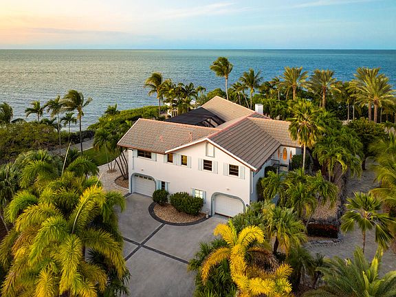 Embrace the rare opportunity to own .87 acres of open-water paradise in the prestigious, gated community of Stirrup Key. Over 300 feet of direct, open Gulf frontage, you'll enjoy spectacular sunrises and sunsets from nearly every vantage point, including a charming sunset gazebo overlooking the iconic Seven Mile Bridge in the distance. The custom Mediterranean-style residence captures the essence of resort living with expansive pavered patios, sparkling elevated pool, and spacious lounging areas absolutely perfect for entertaining against a stunning Gulf backdrop. Three protected basin docks provide sheltered boating access in the marina, while terraced tropical gardens cascade toward the water, lined with mature palms and lush landscaping for a serene coastal ambiance. Inside, soaring cathedral ceilings, wood plantation shutters, and an airy great room with real coral fireplace showcase timeless Keys craftsmanship. The split-bedroom layout ensures privacy, with a luxurious master suite featuring dual closets and skylit bath, plus separate guest quarters. Additional highlights include an elevator, 12,000-gallon cistern, huge garage for cars and golf carts, and a large lower-level storage area with workbenches, pool table, and extra laundry facilities. This gated community, with unique architecture, fewer lots, limited rentals and higher quality restrictions help to sustain a premium and private feel. Only minutes from the Marathon Airport, this one-of-a-kind estate combines open-water grandeur with island tranquility, a true Florida Keys sanctuary. This can also be sold with the buildable Lot 78 next door, which is 38,333 sf and offered for $2,200,000 to create a 1.75 acre compound.