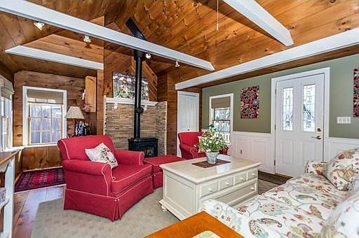 - Fam Dscrp: Ceiling - Cathedral, Closet, Deck - Exterior, Flooring - Wood, Window(s) - Stained Glass, Gas Stove