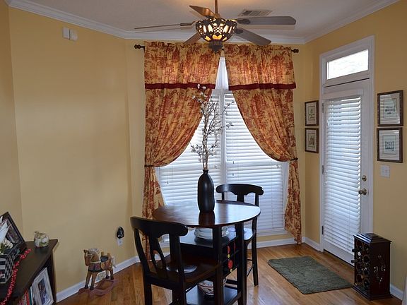 Excellent starter or downsizing home has high ceilings, open split floor plan, nice hardwood floors & paint, great room w/ fireplace, spacious kitchen w/ eat in & formal dining areas, large master suite w/ double vanity, walk-in closet & jetted tub, and just two steps to manage getting into home. Low maintenance exterior, large fenced in yard with golf course view and beautiful landscaping. Great value and location, come see today!