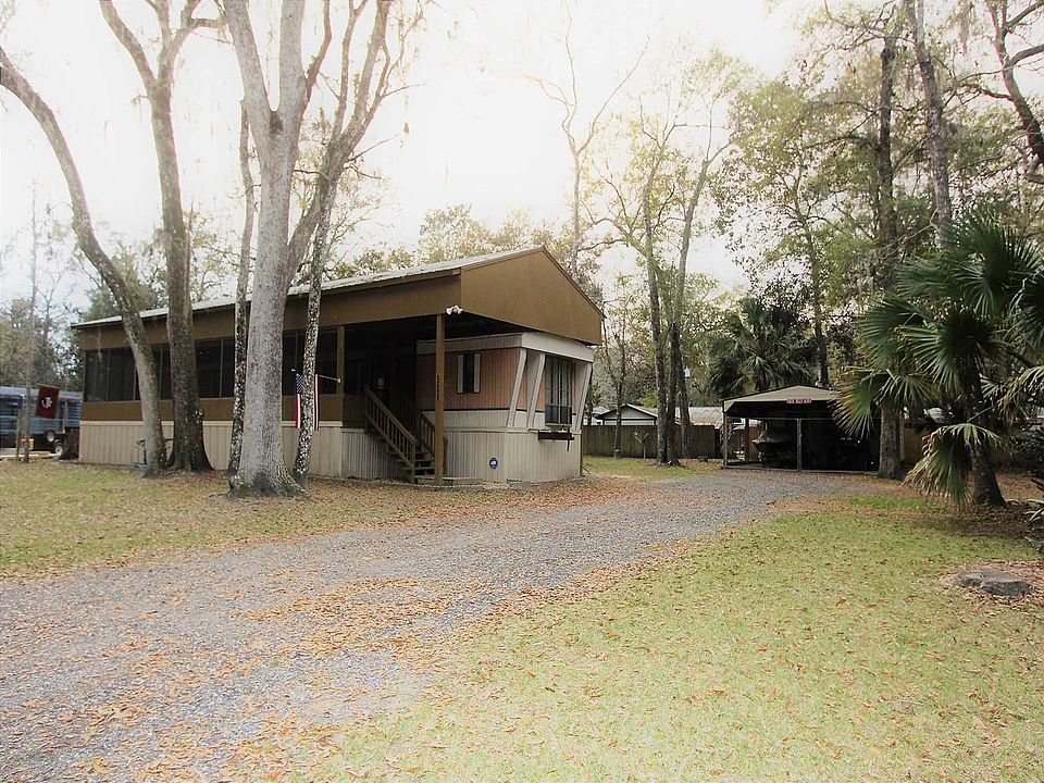 One owner, well cared for 2 bedroom 2 bath mobile home tucked away in the quiet river side community of Howard Creek. This property not only comes fully furnished but also boasts many extras including a custom built dining bar from locally milled cypress, 18 x15 screened cook shed, 24 x12 workshop, 24 x 24 gated canopy to store your boat and golf cart, fire pit, 50 x 10 screened front porch and an extra well. New sub flooring, floor covering, wiring, tubs, HVAC system and exterior paint are just a few of the updates made to this home. Don't miss your opportunity to own this double lot in this highly sought after community!