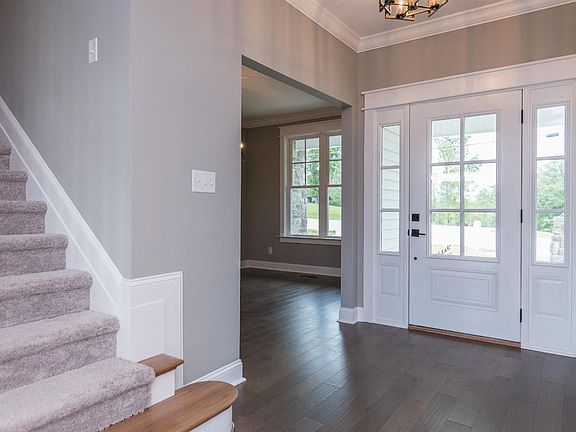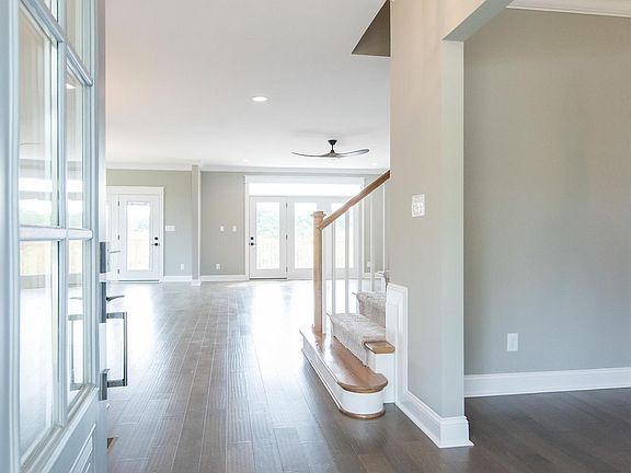 Newly built in 2018, you will love the sophisticated feel of this custom home featuring hardwood flooring throughout the first floor, 9 foot ceilings, a large open family room with travertine fireplace. The spacious chef's kitchen features stainless steel appliances, a double convection oven, range with hood, granite countertops and large kitchen island. The laundry room is just as appealing. The covered back deck overlooks the private backyard for you to sit and enjoy the glorious sunrise. This home features first floor spa-like master on-suite with a large tiled shower complete with three shower heads, inviting soaker tub and granite double bowl vanities. Custom and generous closets beginning in the master suite and carry throughout the home. Upstairs you will find three guest bedrooms, guest bath and walk in storage. The unfinished walk-out basement with full bath rough-in allows for potential added square footage. You will love this beautiful home with its lake access and trails.