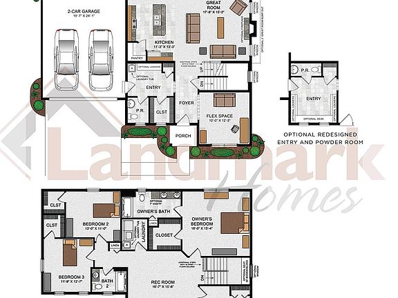 Two-story home with over 2,600 sq feet, 4 bedrooms and 2.5 baths, and a 2-car garage.. Rec room on second floor can optionally be built as a 5th bedroom with closet. Flex space room on first floor provides various uses to suit your needs, and the open great room, dining room, and kitchen accentuate the spacious feel of the first floor. (Pricing may reflect limited-time savings/incentives. See Community Sales Manager for details.)