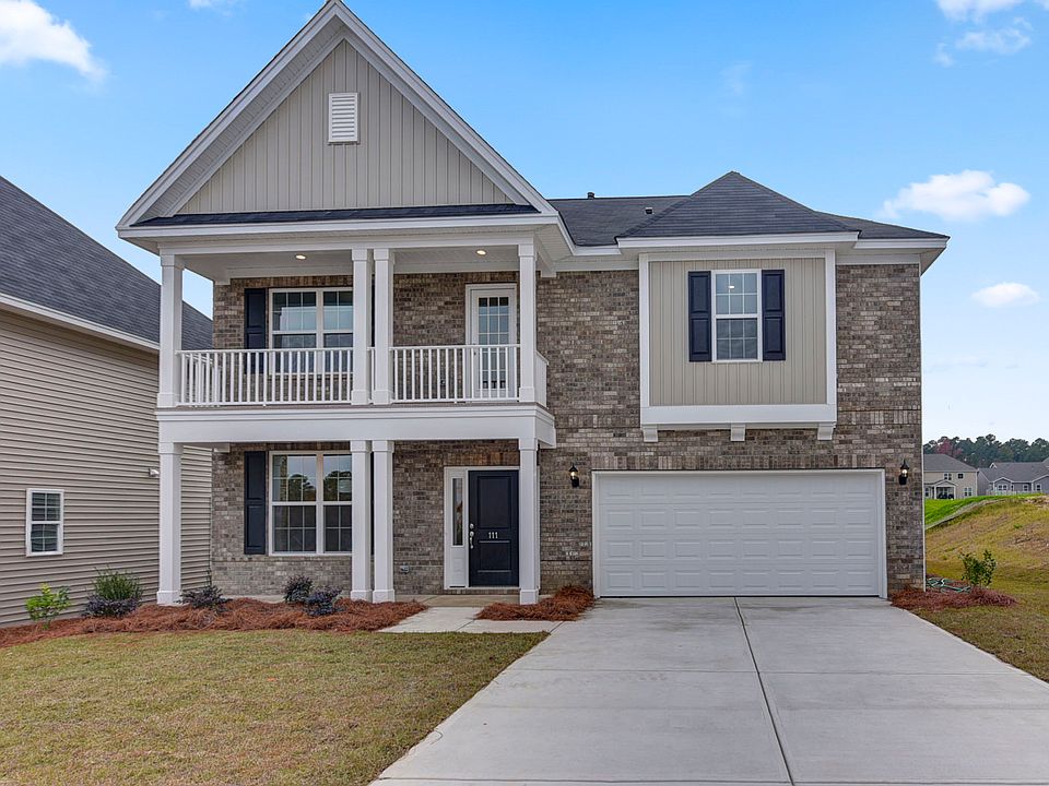 This beautiful two-story, brick-front Palmer plan features double front porches, four bedrooms, two-and-one-half baths, open-concept kitchen with granite countertops, subway tile backsplash, a large island, and stainless steel appliances with gas range. The butler's pantry connects the kitchen with the formal dining room finished with a coffered ceiling. The family room has a natural gas fireplace. Outside you will enjoy your covered porch. All four bedrooms and the laundry room are located upstairs. The large master bedroom has a private bathroom with beautiful comfort-height vanity and a separate garden tub and shower. The laundry room is conveniently located just off the huge master his and her closets featuring a full length mirror. Luxury vinyl plank throughout the downstairs allows for the open floor plan to flow seamlessly. Don't forget about the tankless hot water heater, music port speakers, and so much more that come standard with hauSmart. Come and join us in this wonderful Lexington location.