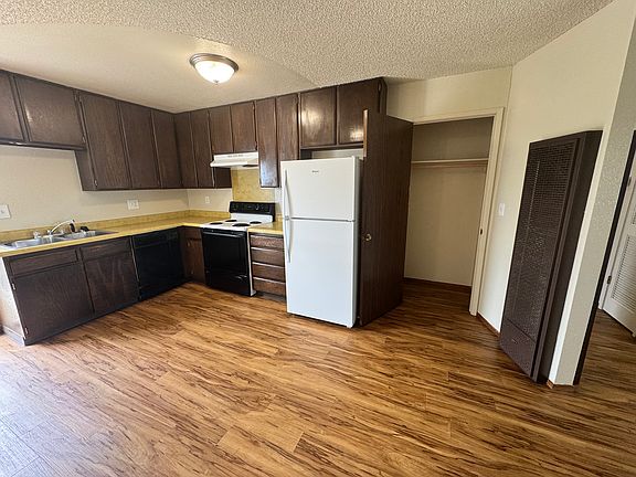 Two bedroom and one bathroom apartment with off-street parking. Spacious unit with large living room, open kitchen with plenty of cabinet space, all appliances including dishwasher/garbage disposal, two large bedrooms with oversize closets, large bathroom with tub shower and oversize vanity storage. Extra linen closet in the hall and small private deck. New paint, window coverings, with newer flooring and fixtures. On site coin-op laundry. Water, sewer and garbage paid. No smoking and no pets. One year lease. Owner pays water, sewer, and garbage.