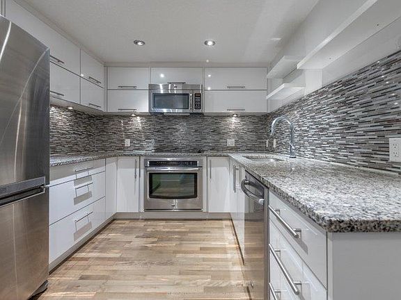 St. John's on Tenth features a SLEEK & MODERN one-bedroom condo with proximity to downtown, located on the 3rd floor. Featuring a CONTEMPORARY KITCHEN with stainless steel appliances, GRANITE countertops, Loads of cabinet space opening into the spacious living & dining area and patio. The bedroom is a great size with ensuite with granite counters & bathtub/rain shower combo. PERFECTLY SITUATED close to shopping, restaurants, cafes, pubs, entertainment, Bow River pathway system (walker's paradise), Riley Park, & SAIT. Proximity to Sunnyside LRT allows for an EASY COMMUTE anywhere in the city, including U of C & downtown, while maintaining a home-based that is second to none. This unit is complete with a secure parking & storage locker. Bike storage also available. Heat and water included Credit Check Required Rates based on a minimum 12-month term