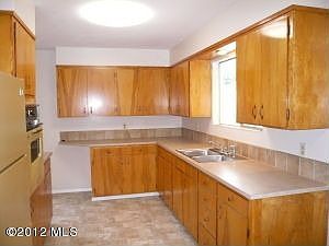 Home has been freshly painted throughout, new carpet on main level, new countertops and vinyl in kitchen, ceramic tile on floor and surrounding tub in bathroom, new light fixtures. Roof resurfaced May 2012. Private backyard on .38 acre. Close to schools.
